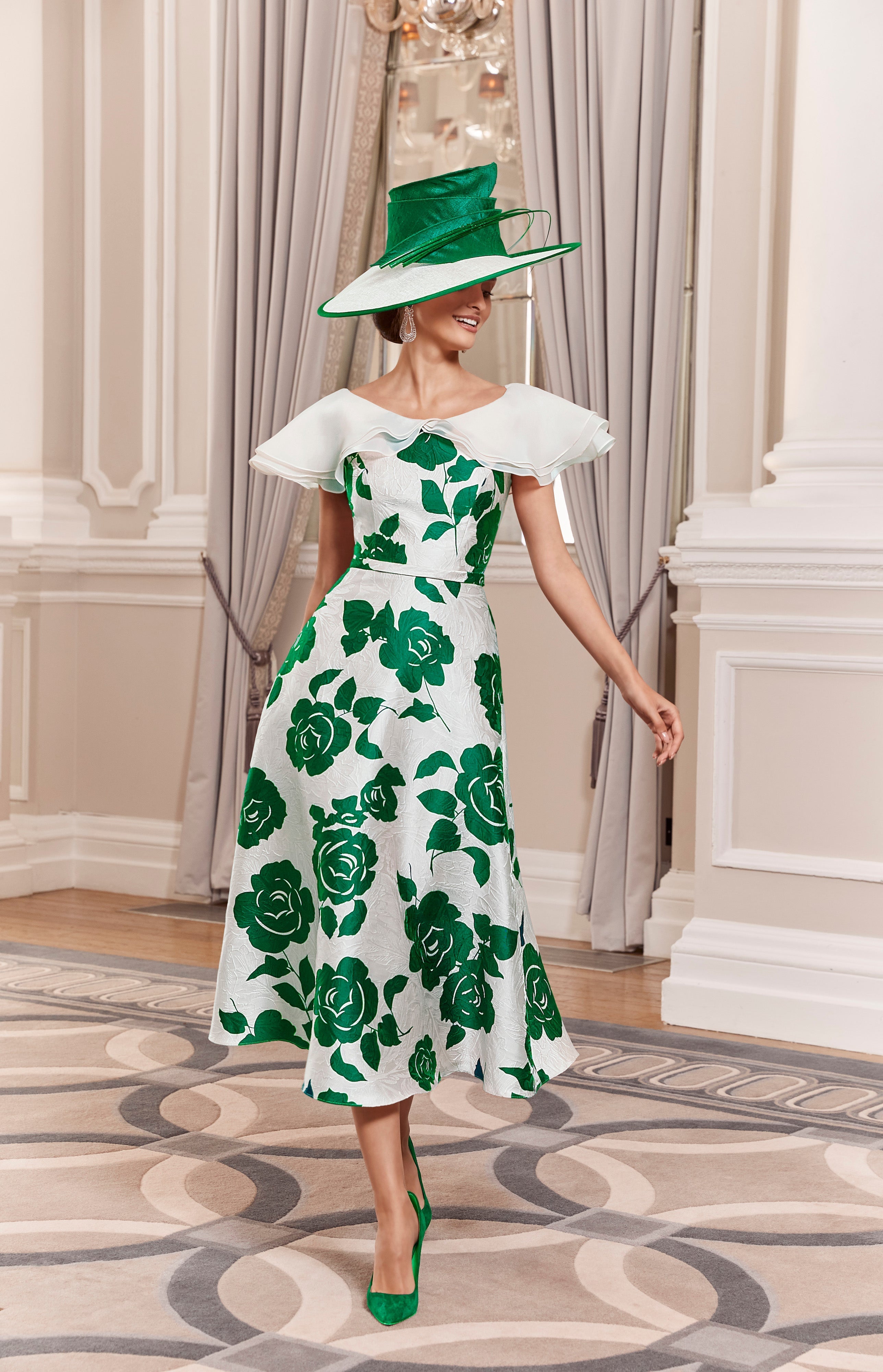 The Veni Infantino 992021 Emerald/Ivory Dress is an elegant A-line midi dress designed with the mother of the bride or groom in mind. It features tasteful shoulder detailing that adds a refined touch while maintaining comfort and style. The complementary emerald and ivory tones create a sophisticated contrast perfect for special occasions. This dress offers a flattering silhouette that ensures confidence throughout your event.