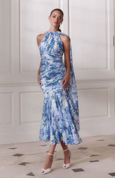 The John Charles 66760A Flora dress is a sophisticated chiffon midi featuring a delicate floral print and a flattering halterneck design. Its fit-and-flare silhouette offers elegance and comfort, making it an ideal choice for destination weddings or as a refined option for the mother of the bride or groom. Crafted to combine style with ease, this dress ensures a graceful presence at any special occasion.