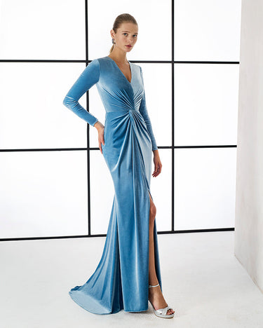 The Couture Club 1T1C9 in light blue is a luxurious full-length velvet gown that celebrates timeless elegance. The sumptuous velvet fabric delivers rich texture and refined sophistication, whilst the flattering V neckline creates a graceful focal point. The full-length sleeves add contemporary coverage and movement, completing a silhouette that's both classic and distinctly modern. The soft light blue tone brings warmth and understated presence, complementing a range of complexions beautifully. This expertly crafted piece combines quality fabrication with thoughtful proportions, perfect for those seeking a gown that's both impeccably refined and genuinely memorable. You'll feel confident and radiant, wrapped in luxury and timeless style.