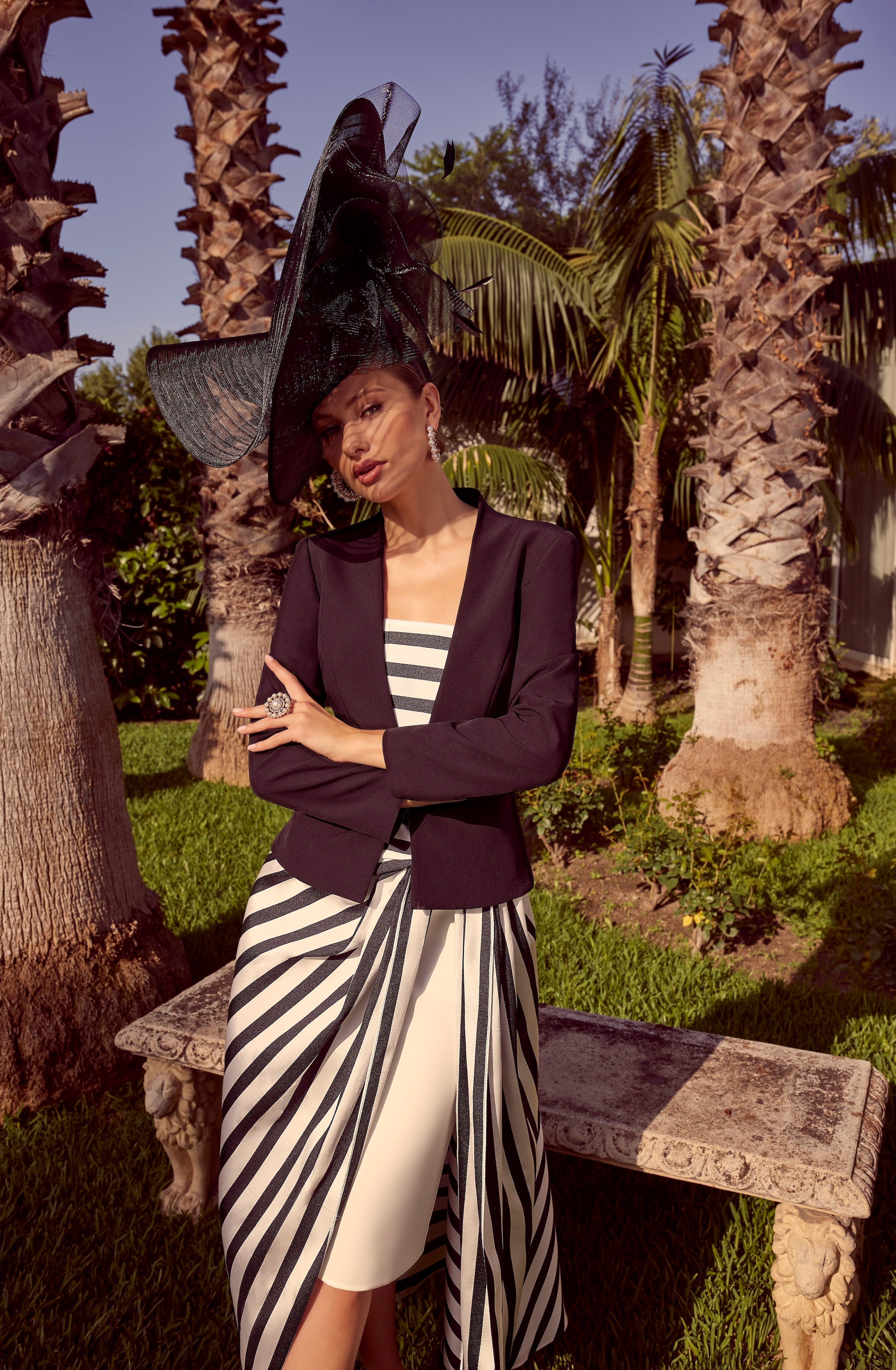 Make a statement in the Veni Infantino 992401 dress in bold black and ivory. This monochrome dress comes with a matching jacket, making it the perfect unique option for the mother of the bride or groom. It's also perfect for the races, exuding sophistication and elegance.