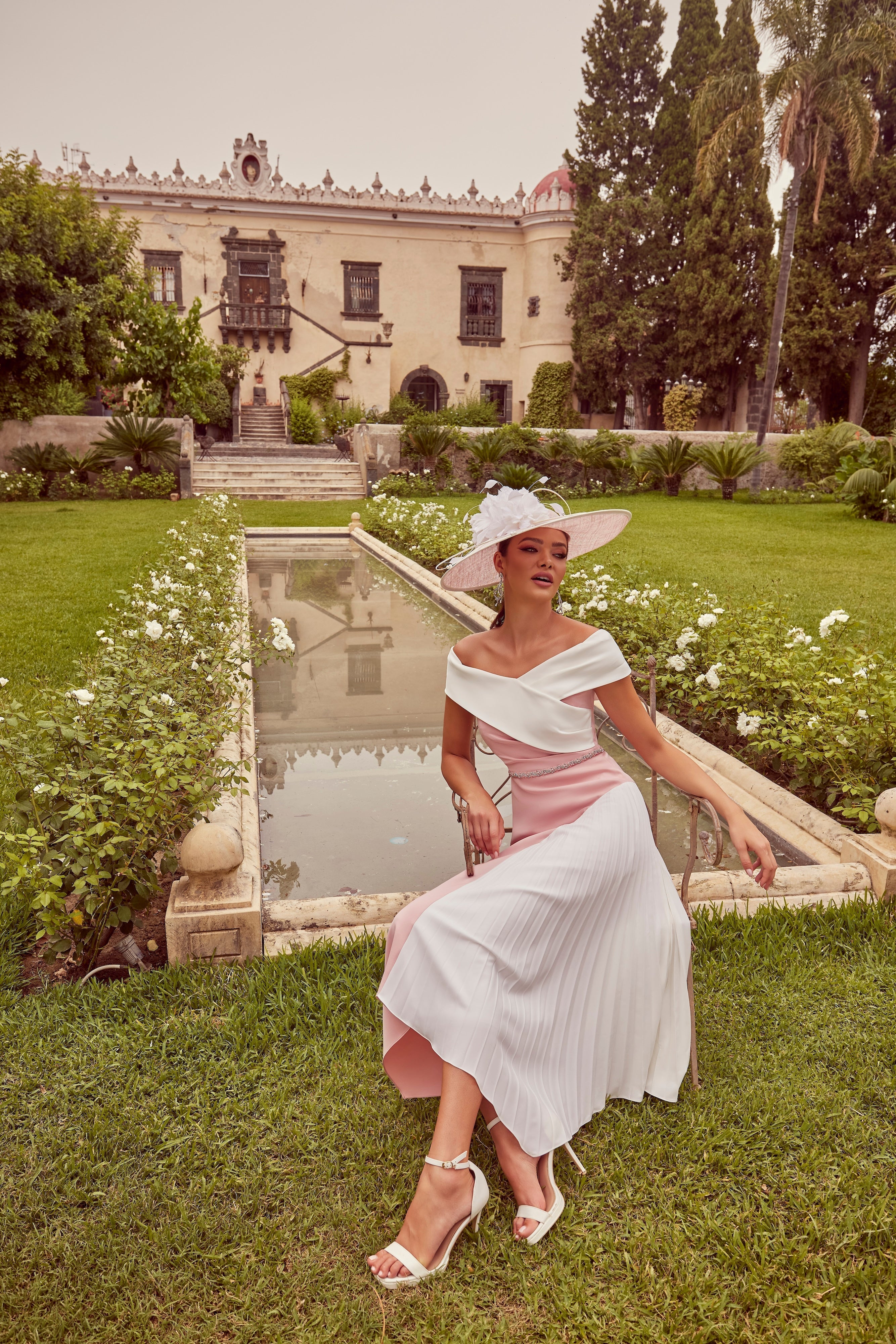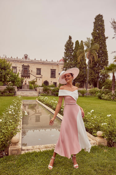 Indulge in pure elegance with the Veni Infantino 992418 Rose/Ivory dress. Featuring an off-shoulder neckline, a delicate bow on the back, and a side pleated skirt, this dress exudes sophistication. Perfect for special occasions, this dress will make you feel like a true fashion icon.
