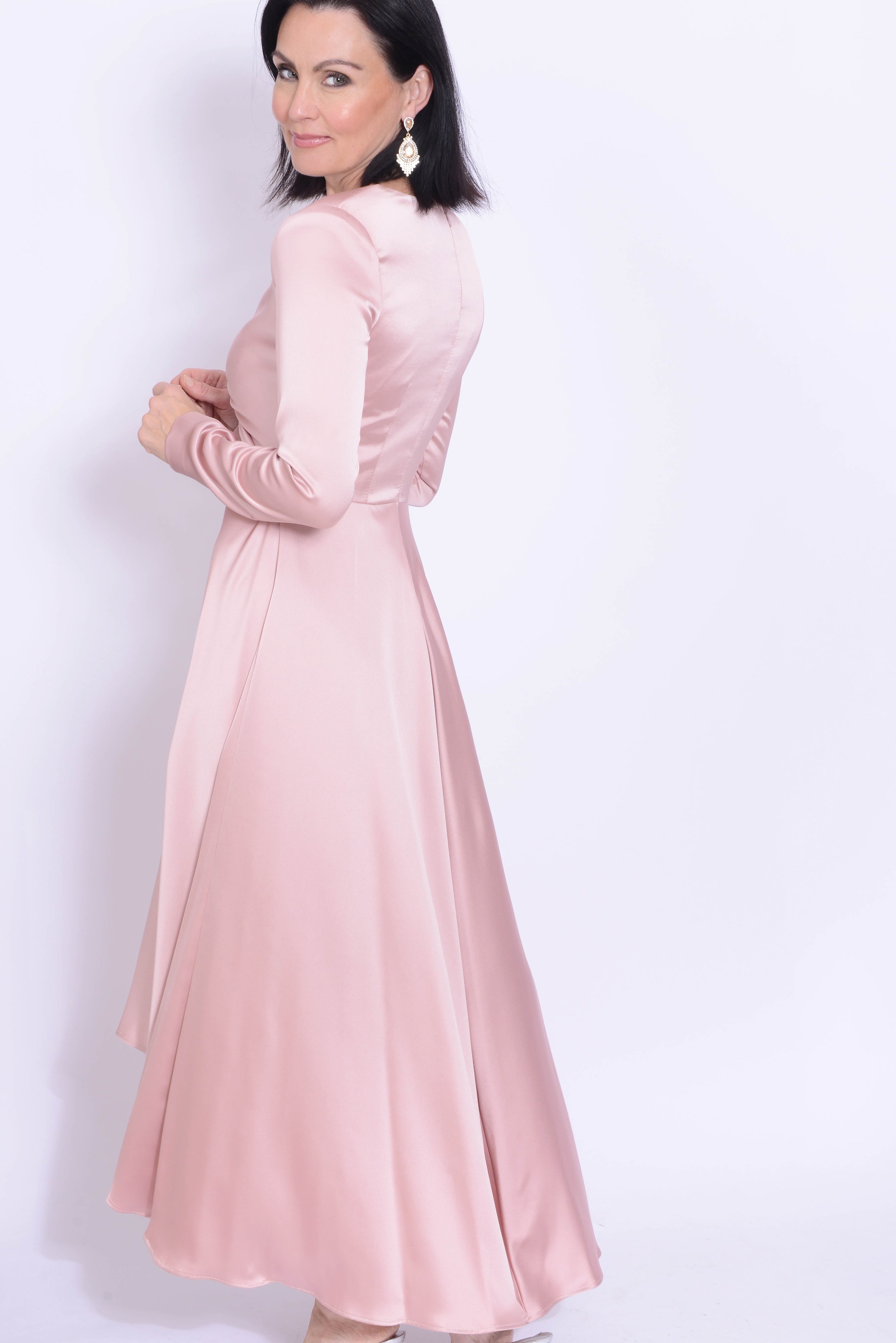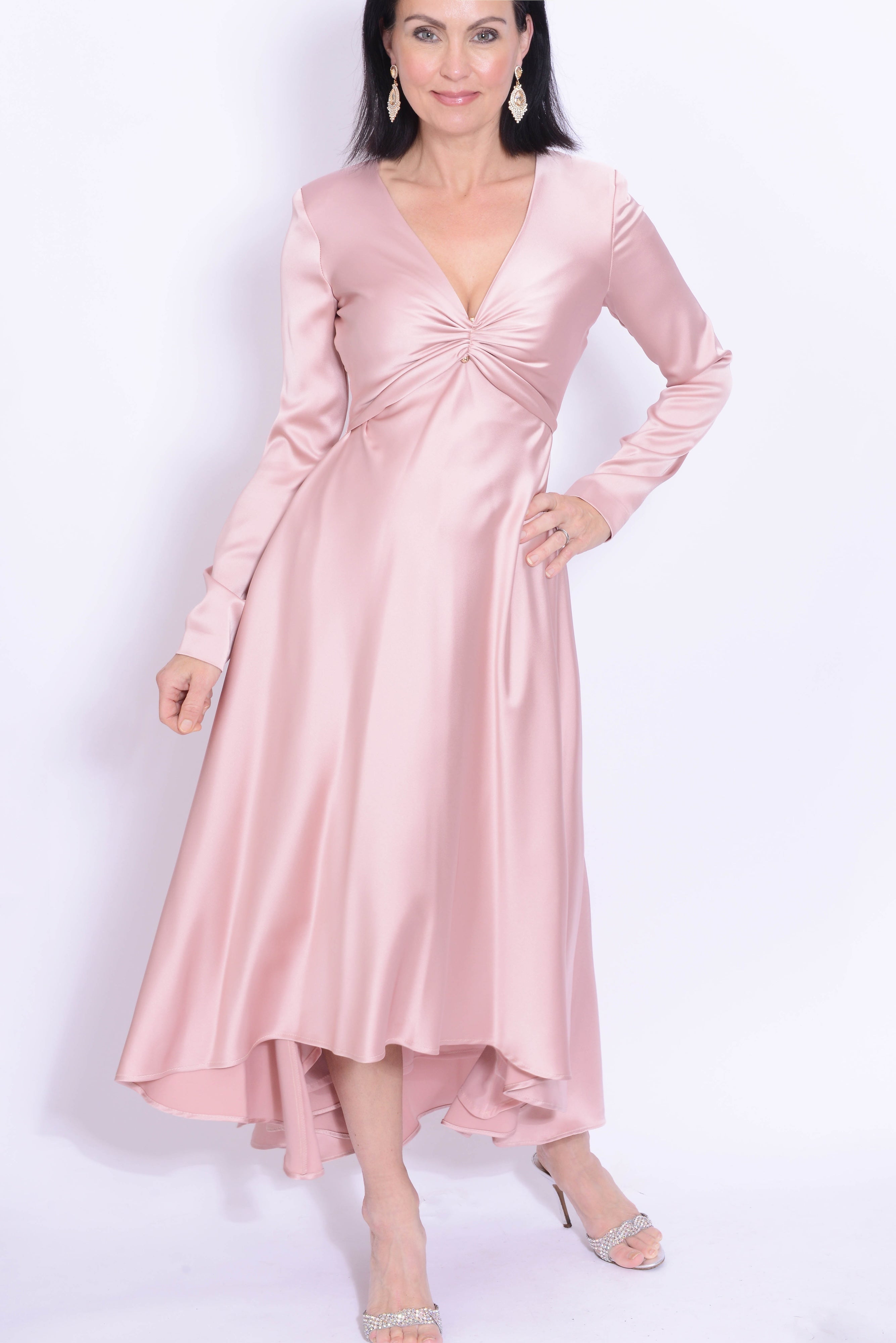 Be the epitome of elegance in the Carla Ruiz 98571 Rose. With a delicate dipped hem, flattering V-neckline, and chic sleeves, this dress is a must-have for any event. Embrace sophistication and versatility with this stylish choice, perfect for weddings or a day at the races. You'll feel confident and chic in this exclusive piece.