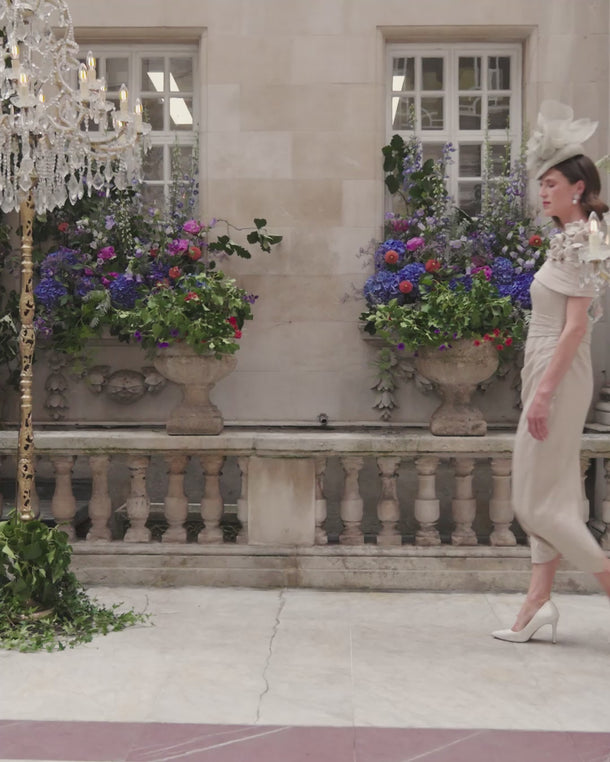 This John Charles 29337A Oyster midi dress combines elegant design with luxurious stretch knit fabric, offering a flattering straight silhouette ideal for mother of the bride or groom occasions and black-tie events. Its refined craftsmanship ensures comfort and sophistication, making it a standout choice for formal gatherings.