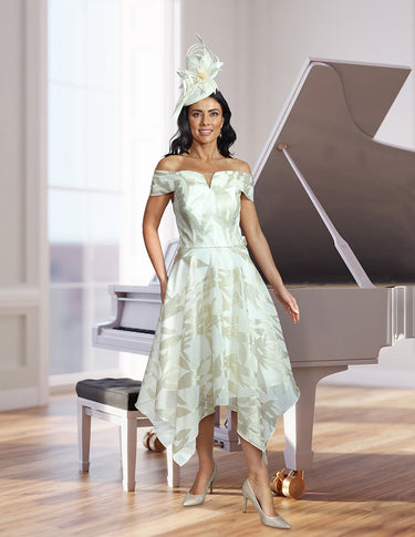Veromia VO2933 Gold is an elegant off-shoulder A-line gown designed for mothers of the bride or groom. Crafted with sophisticated tailoring, this dress features a graceful handkerchief hem that adds movement and refinement to the silhouette. The off-shoulder neckline provides a contemporary touch whilst maintaining timeless elegance, making it an ideal choice for formal wedding occasions. The gold tone complements a range of complexions and pairs effortlessly with classic accessories. This piece combines modern design sensibilities with the polished aesthetic expected at significant family celebrations.