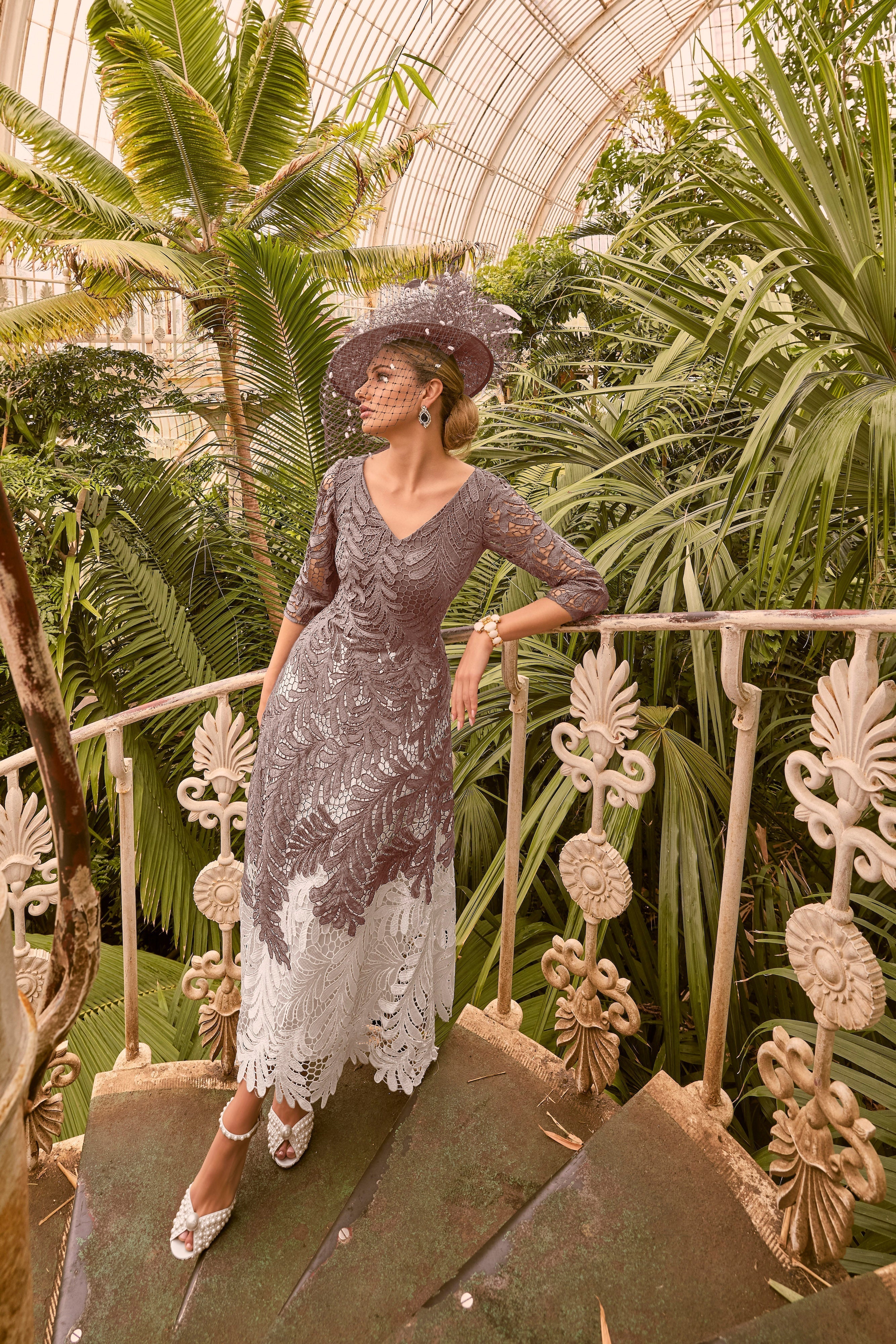 Radiate elegance in the Veni Infantino 992233 Taupe/Ivory dress. A stunning blend of taupe and ivory lace, featuring sophisticated beading for a touch of sparkle, this dress is the perfect choice for your special day.
