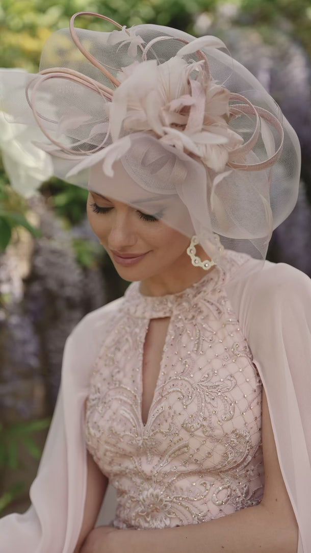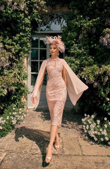 This elegant Veni Infantino 992724 dress in blush features a fitted silhouette enhanced by delicate beaded lace and flowing chiffon sleeves. Designed for mothers of the bride or groom, it combines sophisticated detailing with graceful comfort, making it an ideal choice for formal occasions. The intricate beadwork adds subtle sparkle, while the chiffon sleeves provide a soft, refined finish.