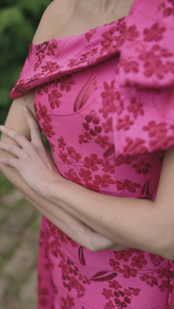 The Veni Infantino 992730 in Fuchsia/Red is an expertly crafted jacquard midi dress featuring a fitted silhouette and an asymmetric design. Its distinctive caped skirt adds elegant movement, making it a standout choice for mother of the bride or groom at black-tie weddings and formal events. This dress combines sophisticated tailoring with vibrant colour to ensure a polished and memorable appearance.