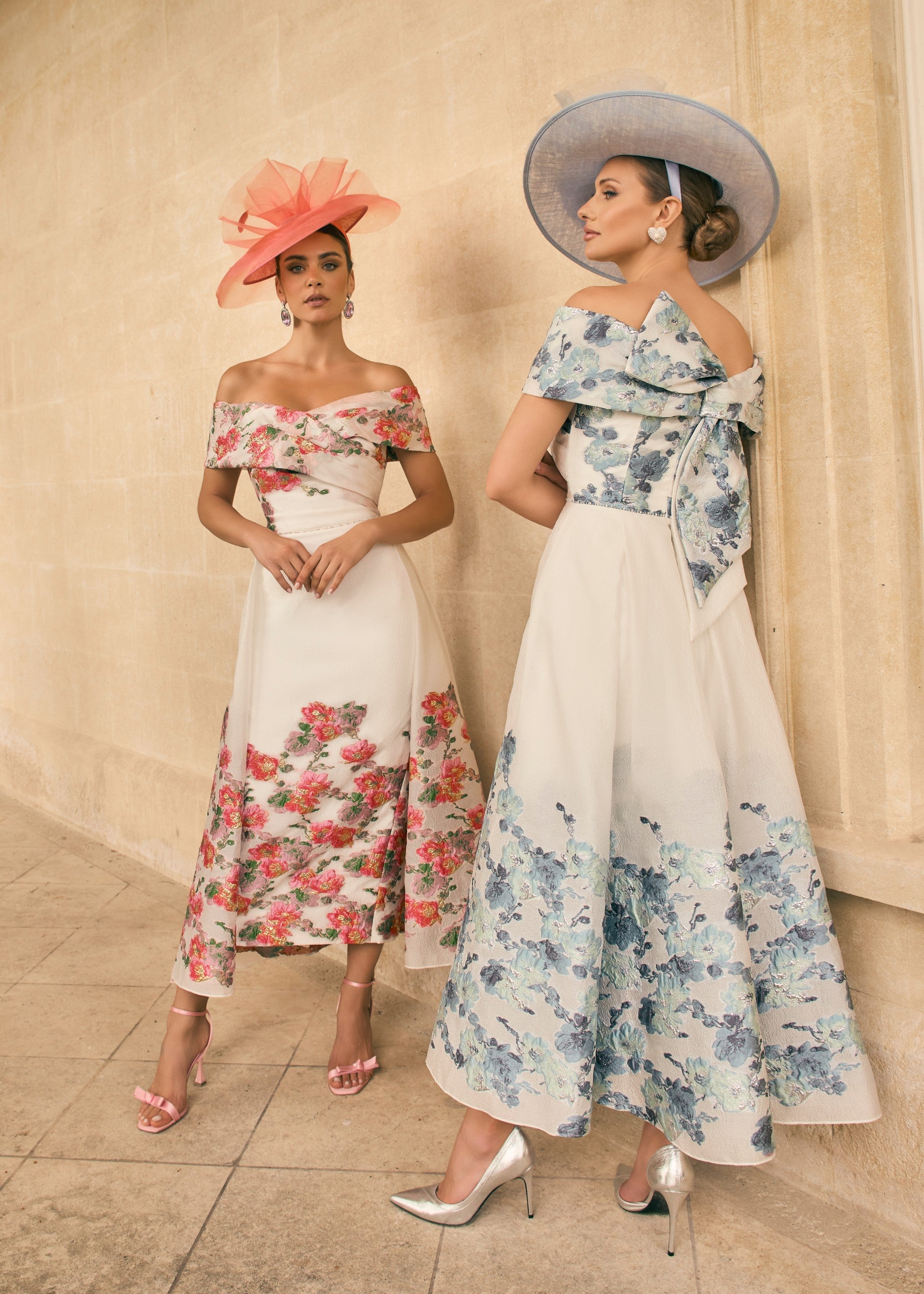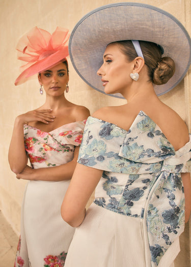 This Veni Infantino 992768 dress combines elegance and sophistication with its ivory and blue textured organza fabric. Designed as an off-shoulder, A-line silhouette that falls gracefully to the ankle, it features a striking bow at the back, adding a refined touch. Ideal for mothers of the bride or groom, this dress offers a timeless look with delicate detailing that enhances its formal appeal.
