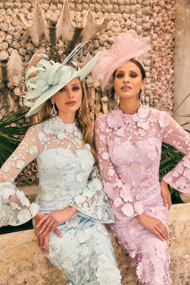 This Veni Infantino 992794A dress in soft violet features a straight, fitted silhouette that gracefully falls to the knee. Designed with long sleeves, delicate tulle, and intricate flower appliqué, it offers an elegant choice for mothers of the bride or groom, race day events, and black-tie occasions. The refined details and flattering cut ensure a sophisticated and polished appearance suitable for formal settings.