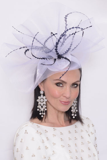 Expertly crafted with unique feathers, The Niche Collection 23036 fascinator adds a touch of elegance and sophistication to any outfit. Made with high quality crin material, this fascinator is a must-have for any fashion-forward individual looking to make a statement. Elevate your style with this one-of-a-kind accessory.