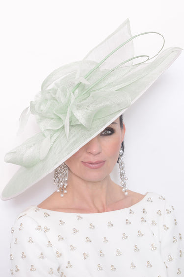 A beautifully simple hatinator for those wanting anything too grand. The main brim of the hat has a double bow with veiling.