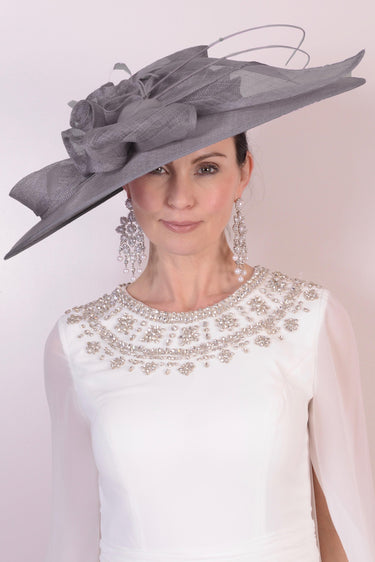 A beautifully simple hatinator for those wanting anything too grand. The main brim of the hat has a double bow with veiling.