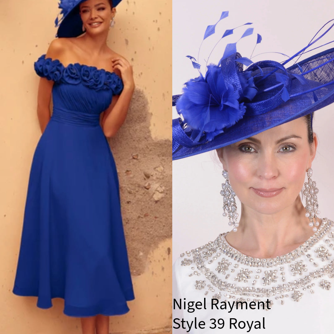 Indulge in the royal elegance of our Invitations by Veni 36110 dress. Made of luxurious chiffon, the off shoulder design features a pleated bodice and a 3D rose detail neckline. Perfect for any special occasion, this dress will make you feel like a true queen.