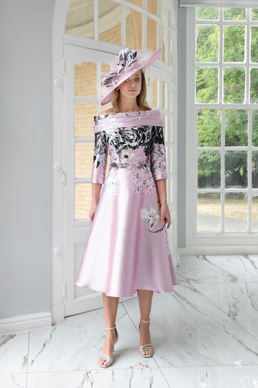 Elevate your mother-of-the-bride or mother-of-the-groom look with the Irresistible IR8832TJ in soft baby pink. This sophisticated midi dress features an elegant off-shoulder neckline and flattering 3/4 sleeves, creating a refined silhouette perfect for formal celebrations. The delicate printed design adds visual interest while maintaining understated elegance. Crafted for comfort and style, this piece strikes the ideal balance between timeless grace and contemporary fashion, ensuring you feel confident and radiant throughout the occasion.