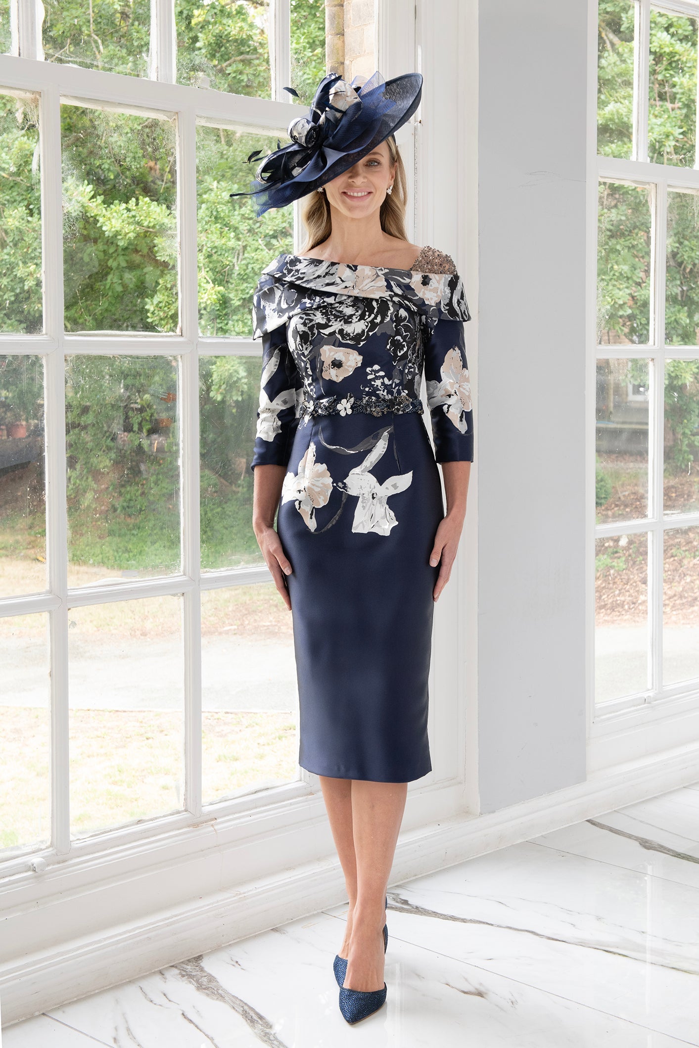 Elevate your mother-of-the-bride or mother-of-the-groom look with the Irresistible IR8833TJ in sophisticated navy. This fitted knee-length dress features elegant 3/4 sleeves and showcases beautifully embellished and printed fabric that commands attention. Designed with refined tailoring and premium detailing, it strikes the perfect balance between timeless elegance and contemporary style. An ideal choice for those seeking a polished, memorable appearance at special occasions.