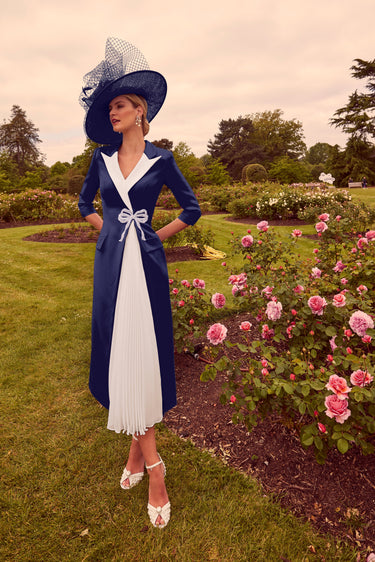 Look stunning in the Veni Infantino 992240 Navy/Ivory dress. Constructed with a fit of precision, it features a pleated skirt and classic collar neckline for a timeless look. Crafted with the highest quality materials for optimum comfort and style, this fitted dress is perfect for any informal occasion.