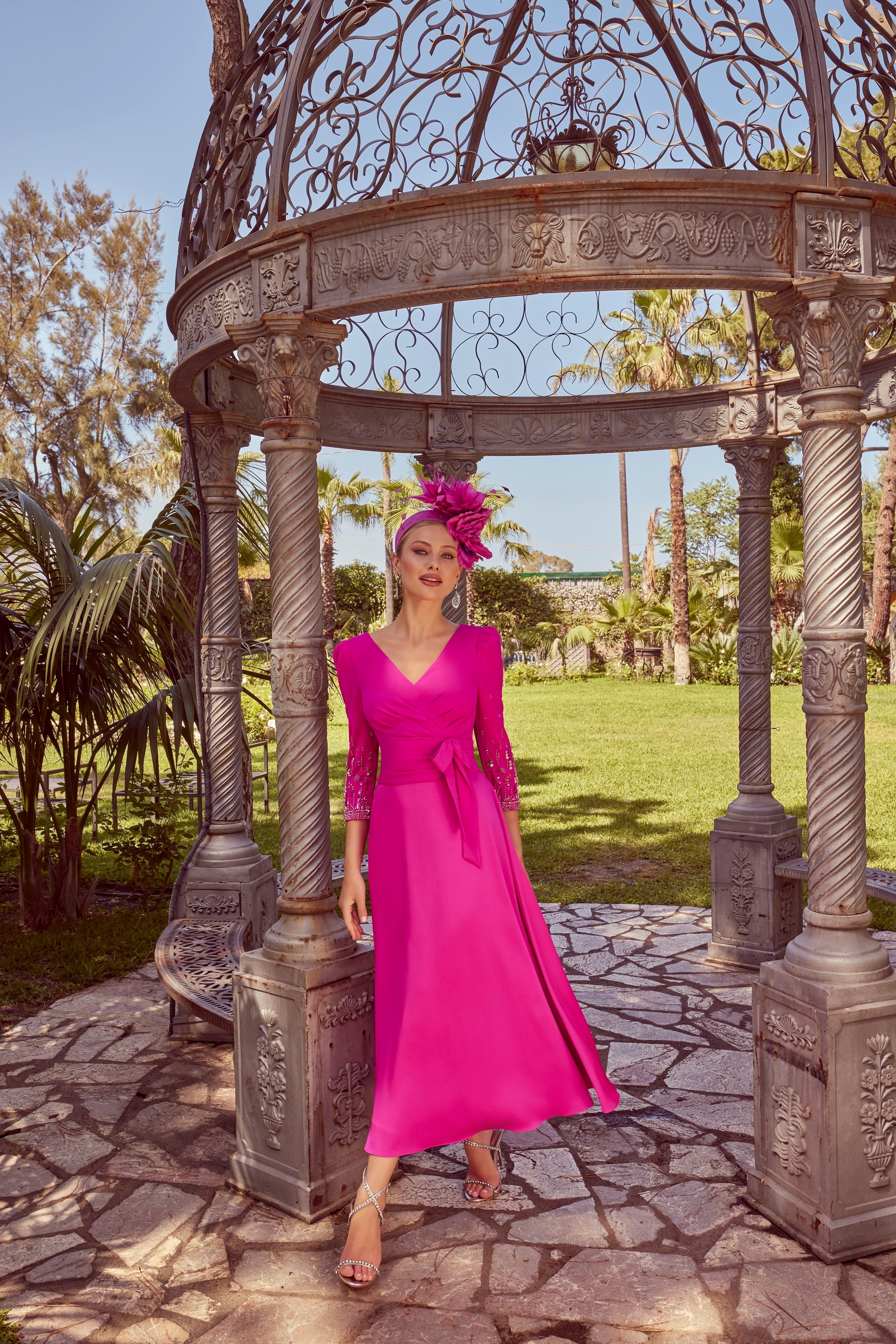 Make a statement with the Veni Infantino 992455 Hot Pink dress. The vibrant v-neckline and beaded cuffs add a touch of luxury and sophistication to this stunning dress. Its hot pink color is sure to flatter many skin tones, making you stand out at any event. Elevate your style with this exclusive piece.