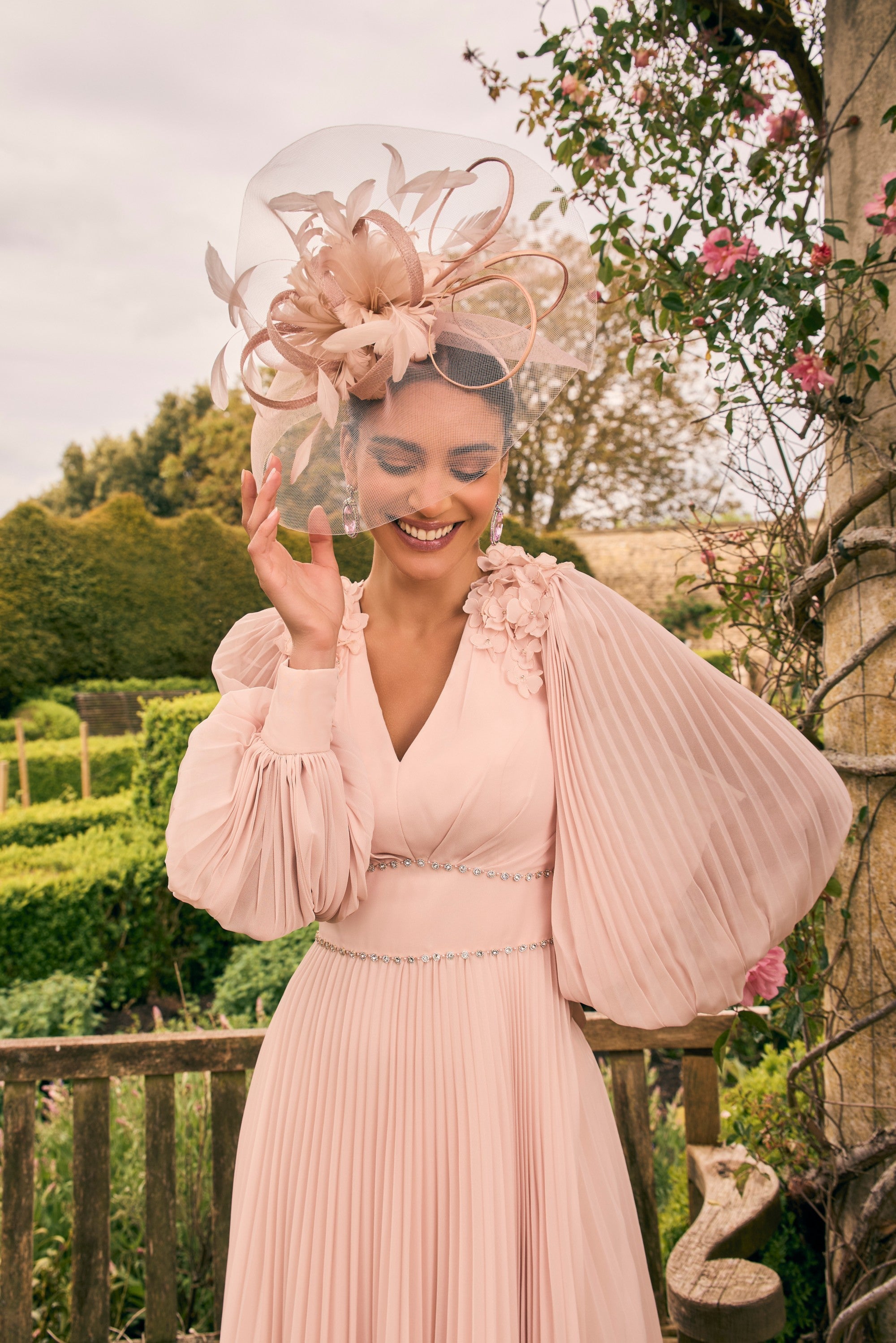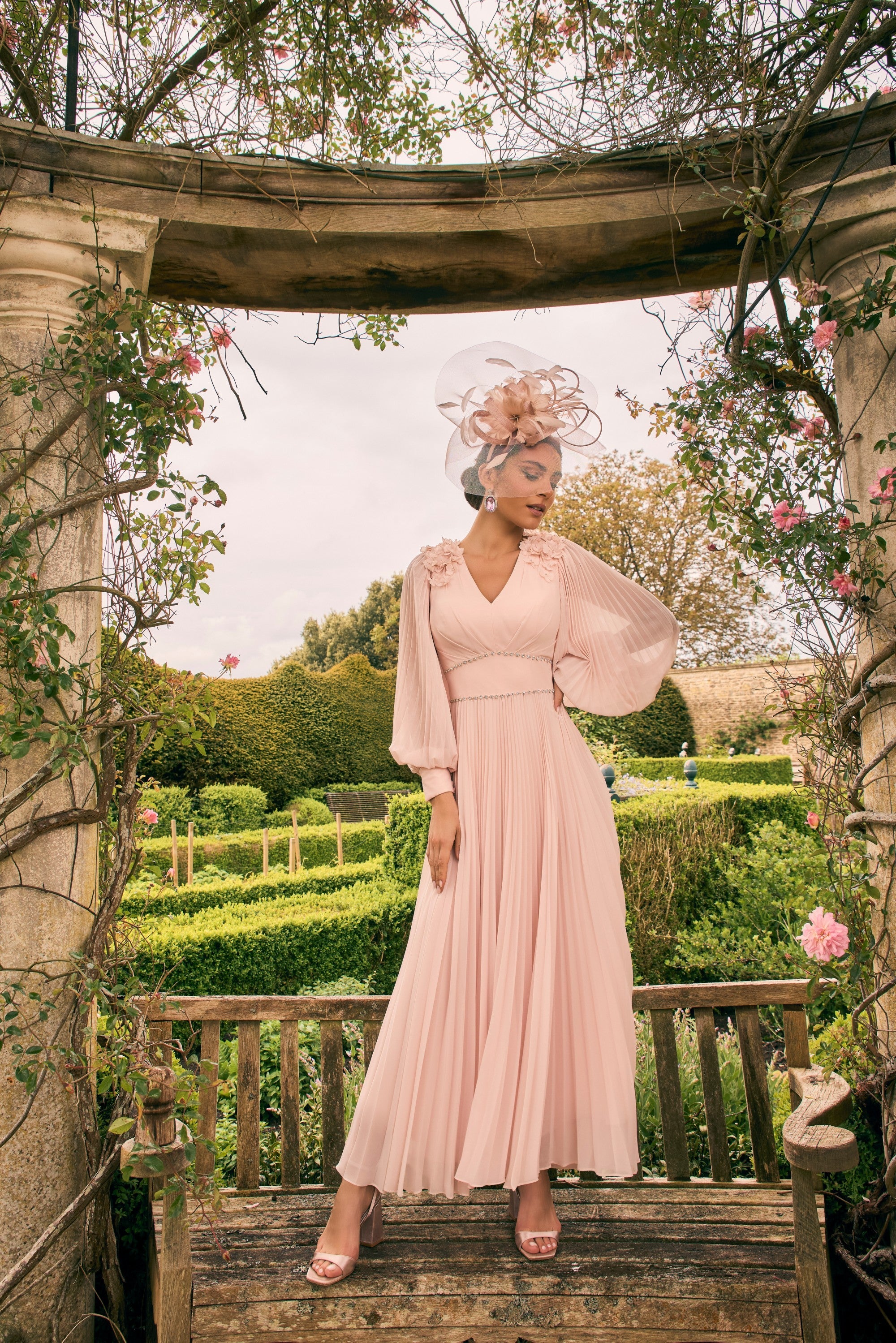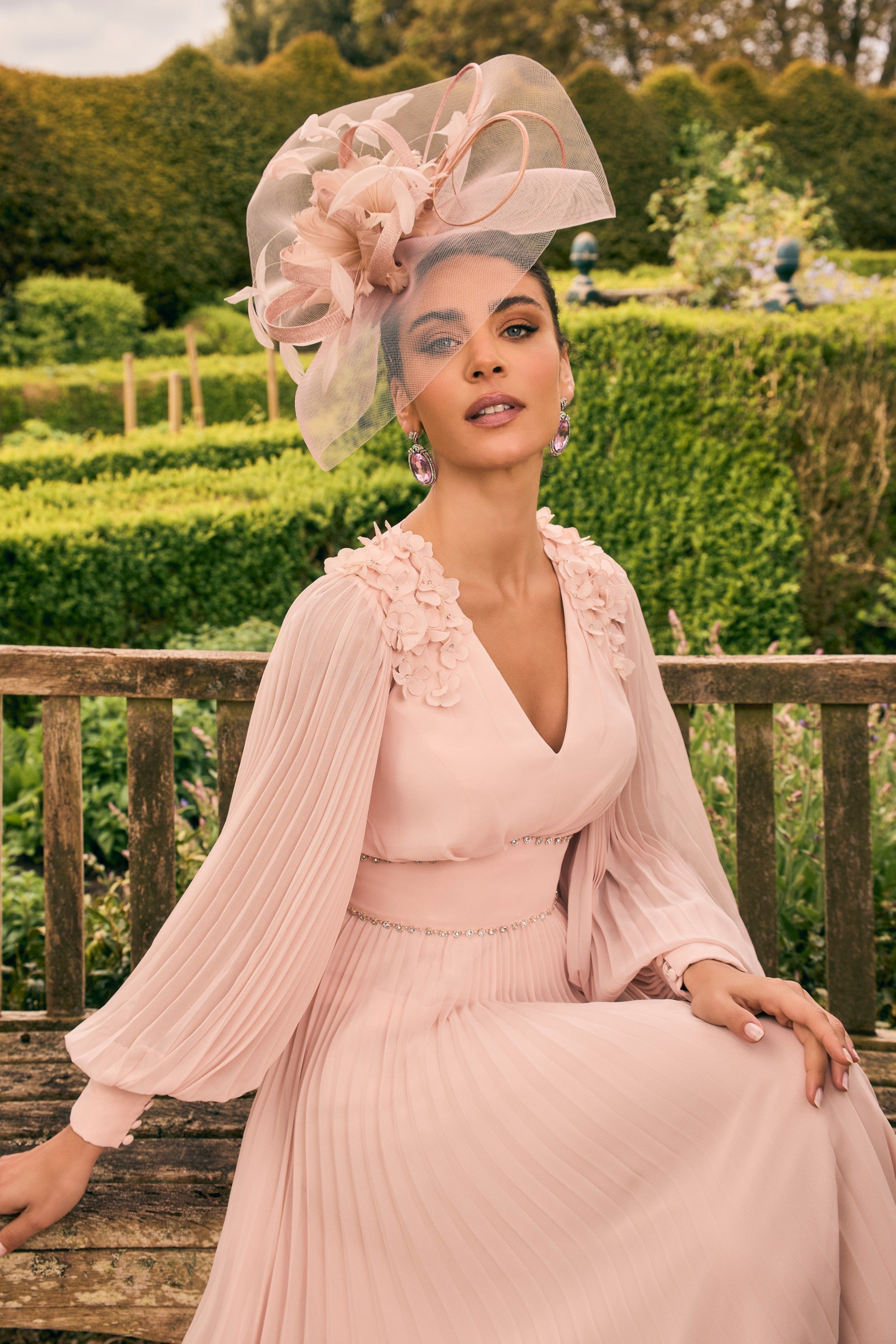 The Veni Infantino 992777 in Pink Champagne features a flowing maxi silhouette crafted from delicate chiffon, adorned with exquisite flower appliques. Its long balloon sleeves and V-neckline create an elegant yet modern statement, while the A-line cut offers graceful movement and a flattering fit. Perfectly suited for mothers of the bride or groom, this dress combines softness and sophistication for distinguished formal occasions.